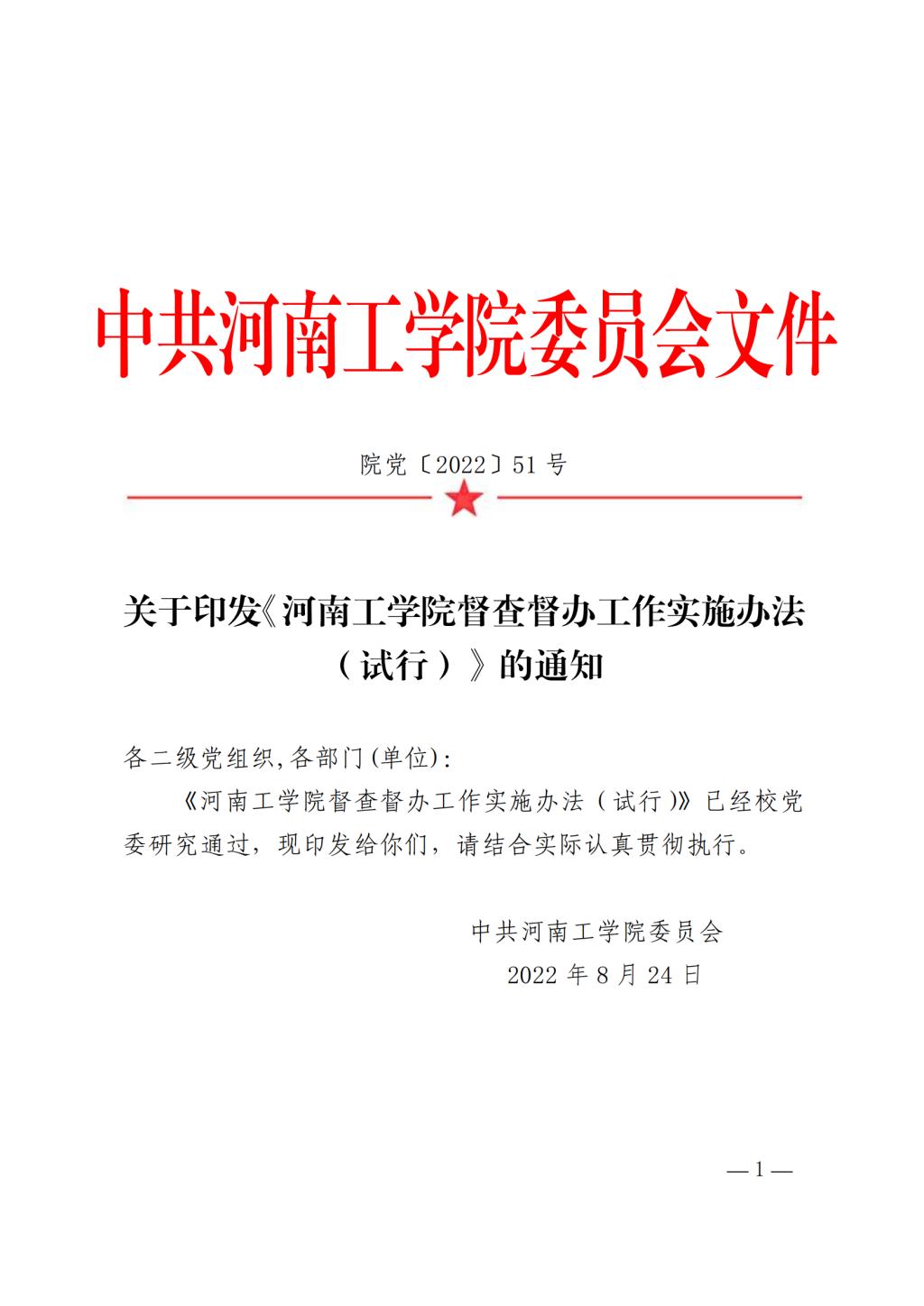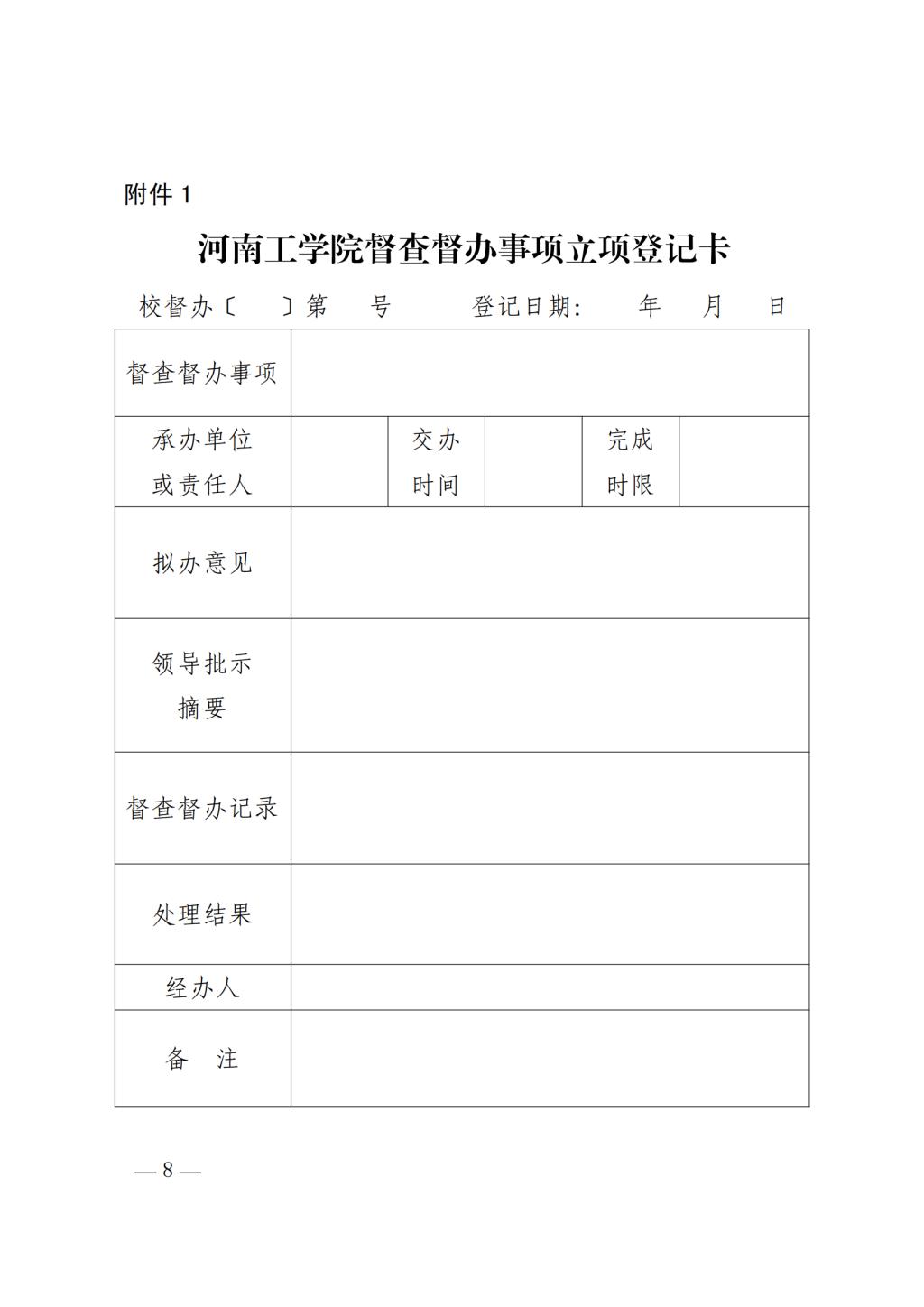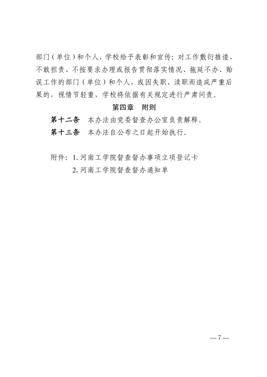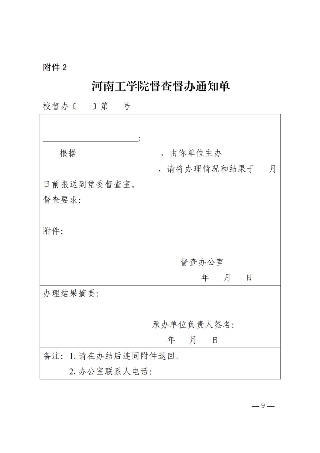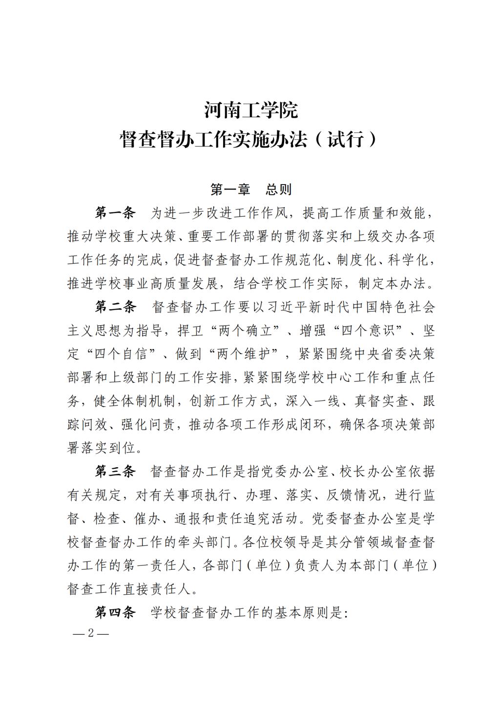 关于印发《河南工学院督查督办工作实施办法(试行)》的通知